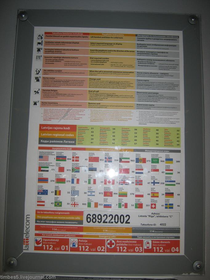 Телефон. Выше - справочная листовка с кодами бывших районов Латвии (интересно, они действуют до сих пор?) и основных стран, включая Гонконг с флагом КНР.