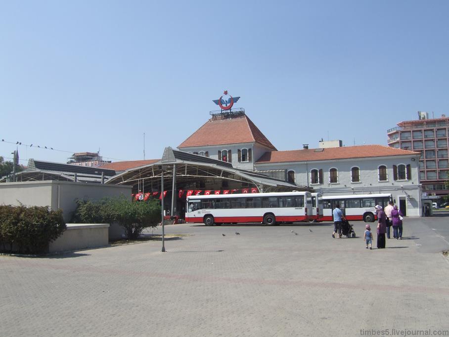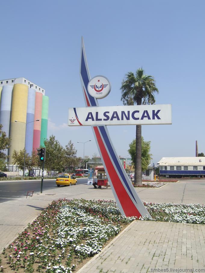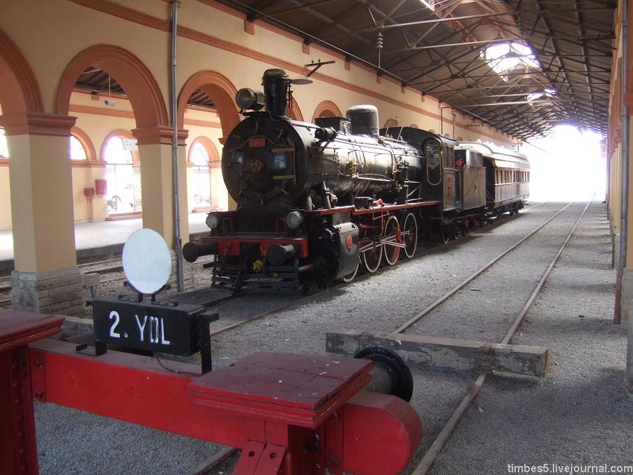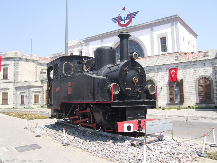 Но более любопытен другой тупиковый вокзал Алсанджак на перпендикулярной ж/д линии, где собрался разнородный архитектурный ансамбль с немецким узкоколейным (600 мм!) паровозом 1918 года.